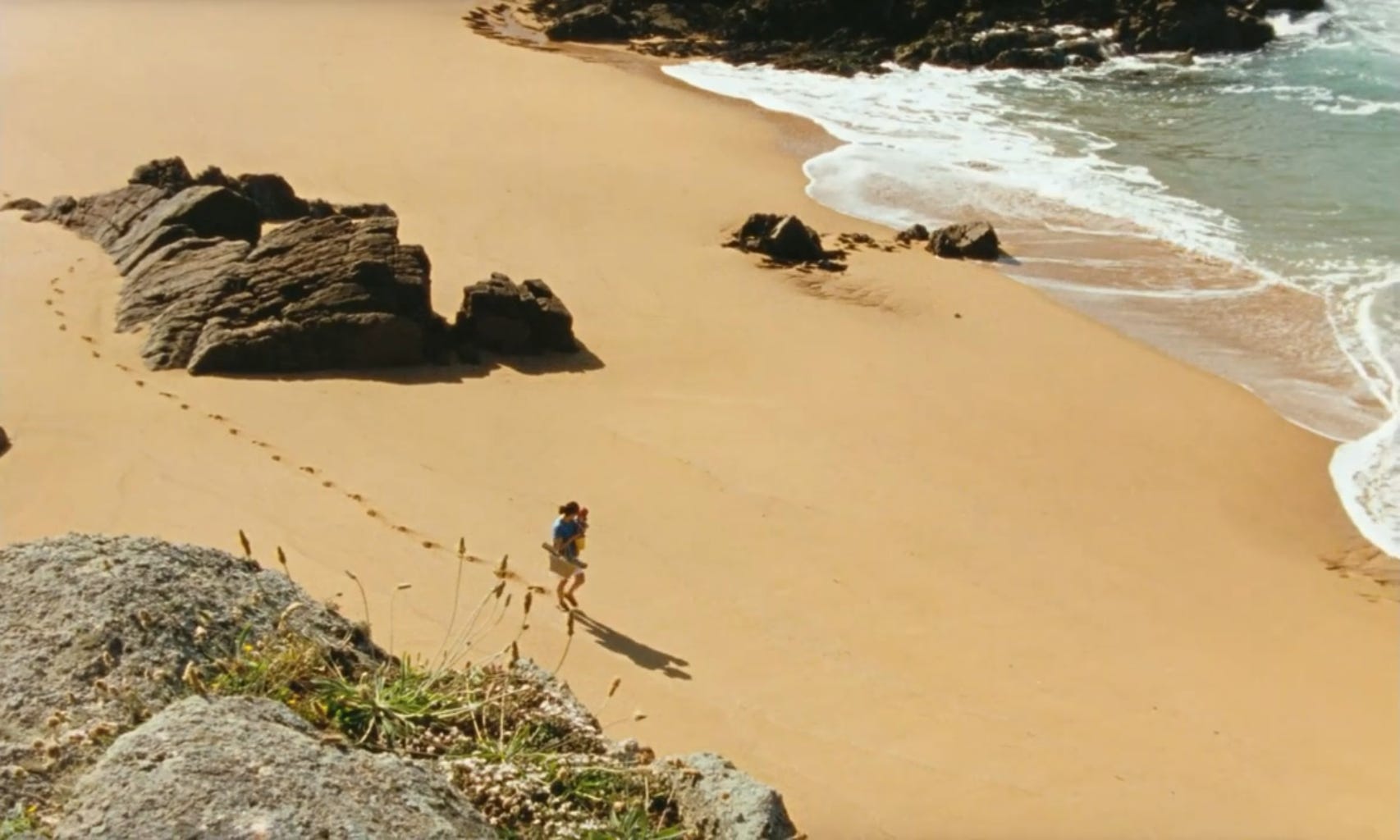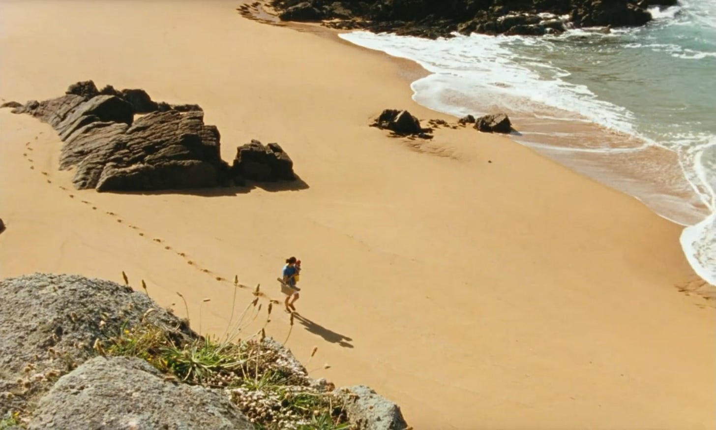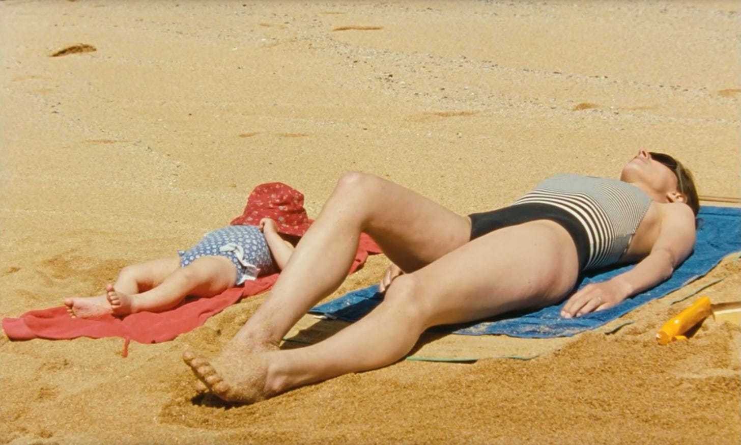 From the first few idyllic frames of François Ozon’s See the Sea, I was reminded that I am long overdue for a vacation. I know of the healing powers of a long swim in the ocean, a nap that leaves your cheeks rosy because you forgot to reapply your Supergoop! and the rewiring of your brain that can happen when it’s not bogged down by the click of Slack notifications and emails (Opens Google Flights). Through soft vignettes, we are invited into the lovely seaside home and life of Sasha and her husband, who works in Paris while she cares for their infant daughter, Siofra. He is heard mostly through phone calls squeezed into his busy schedule. When a backpacker, Tatiana arrives asking to camp on their front lawn, Sasha seems at first confused and then open-minded, assuming it will be a short stay, and perhaps some company could be nice.