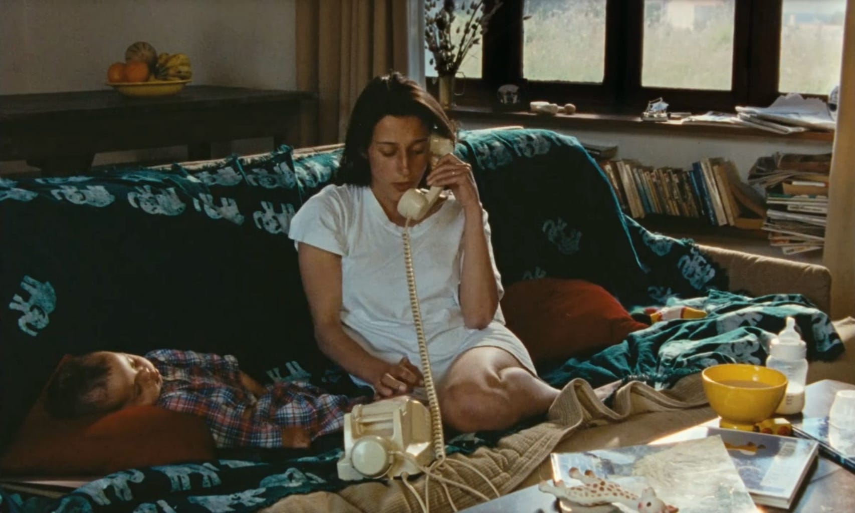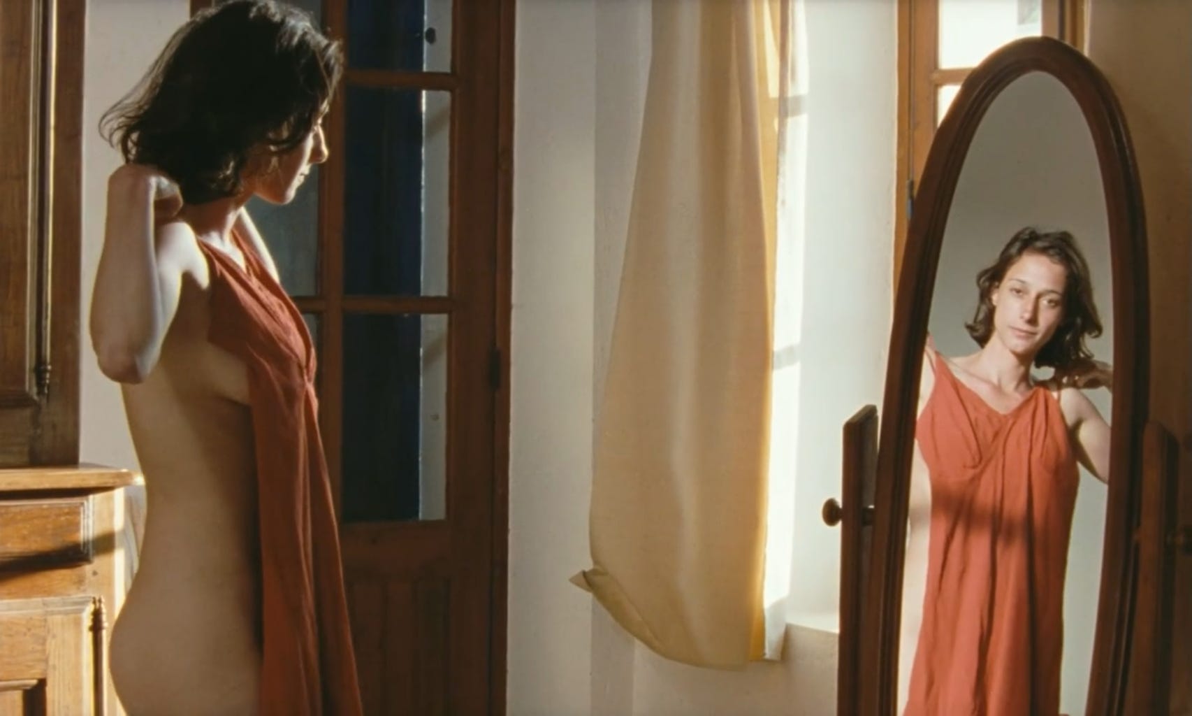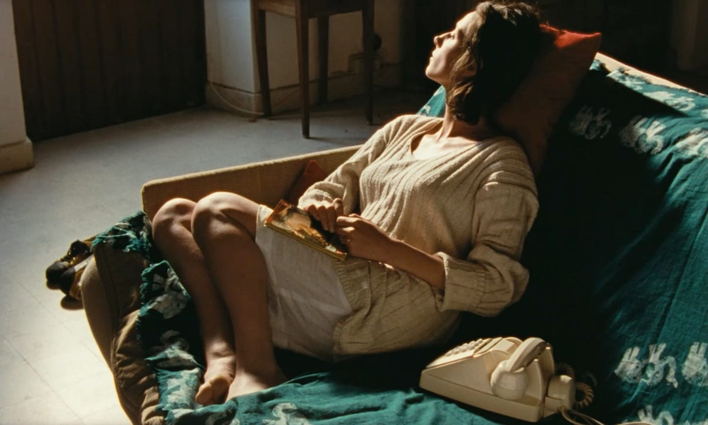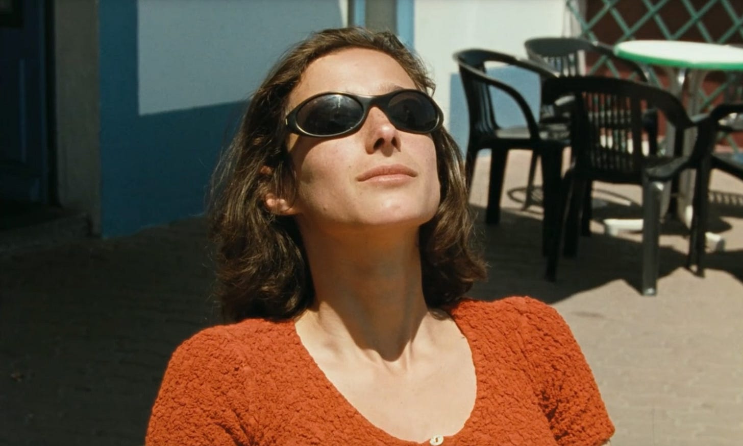 Sasha seems uneasy in her singular role as mother. She yearns to be desired, to be touched, and understood by someone else. Tatiana’s arrival seems to awaken memories of her younger self who was less inhibited, and more impulsive. Her life now is beautiful, but quiet, and predictable. One balmy afternoon, she slips on a curve hugging dress and bikes away to the city to have a solitary drink. The camera lingers as she slowly tilts her head back, soaking in the moment and chasing the feeling that she’s been missing. You can almost feel the sun on your face too. The next day she has an encounter with a stranger while her daughter naps on the beach, a fleeting act that feels less like rebellion and more like an attempt to remind herself she still exists.