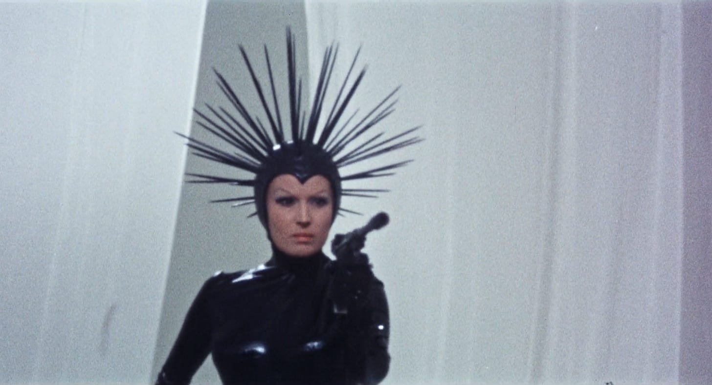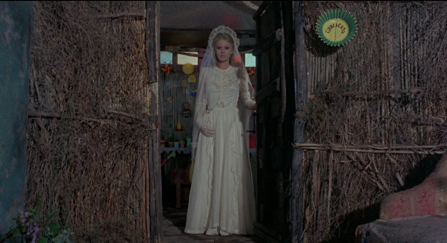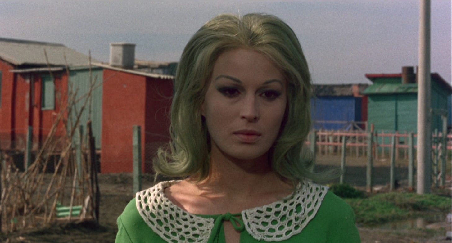 The Earth Seen from the Moon by Pier Paolo Pasolini, a director who collaborated with Fellini on one of my favorite films – Nights of Cabiria, but also directed one of my most reviled films Salò,or the 120 Days of Sodom, brings a visually ambitious if sometimes icky short to the collection. Its bright palette and exaggerated leads give it the feeling of a live-action dark Disney movie, but the underlying plot is thin. Pasolini removes all agency from our central character who doesn't even speak. Throughout the short, she is a doll, and then a heel in her husband and son-in-law’s scheming. The creative direction for this short are a separating the art from the artist situation for me. These images would do numbers on Tumblr in 2011.