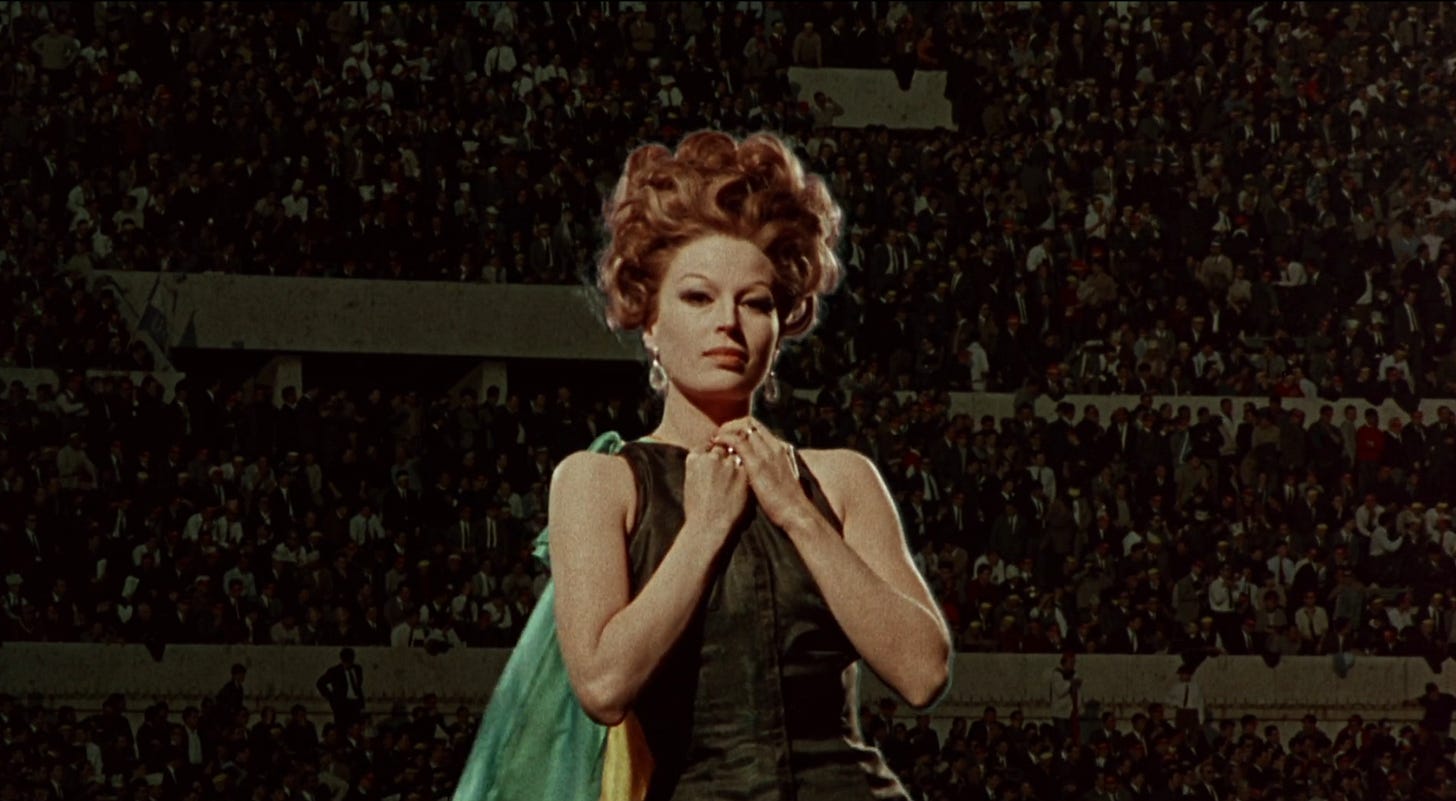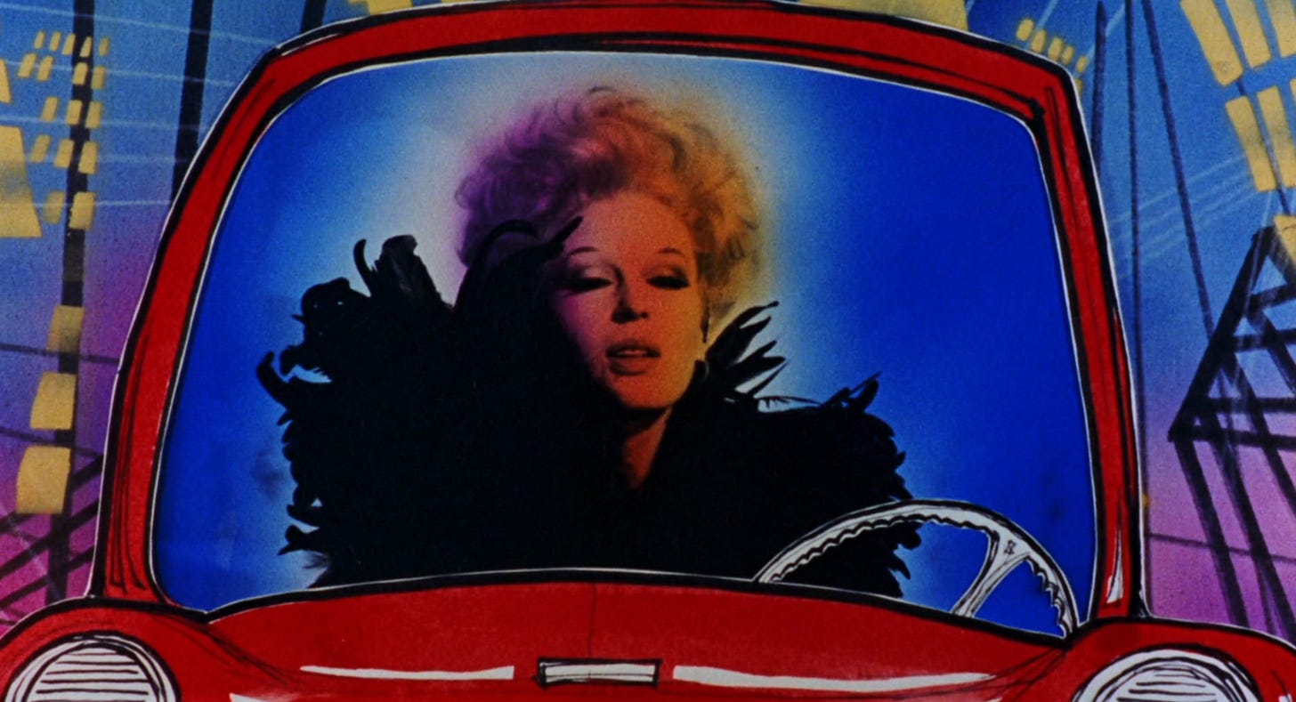 Civic Spirit by Mauro Bolognini is such a quick little romp it feels like a short film that would play before a Godard film. It has the playful and tongue-in-cheek French New Wave energy and an editing style that just speaks to me. It precedes Monty Python but feels like one of their sketches with the rare female lead. Mangano has one goal and one goal only, to get to her date on time, her sick passenger, a bleeding nuisance of a man be damned. She speeds through traffic recklessly all while wearing a glamorous ballet pink bonnet resembling a blooming flower, Bravo!